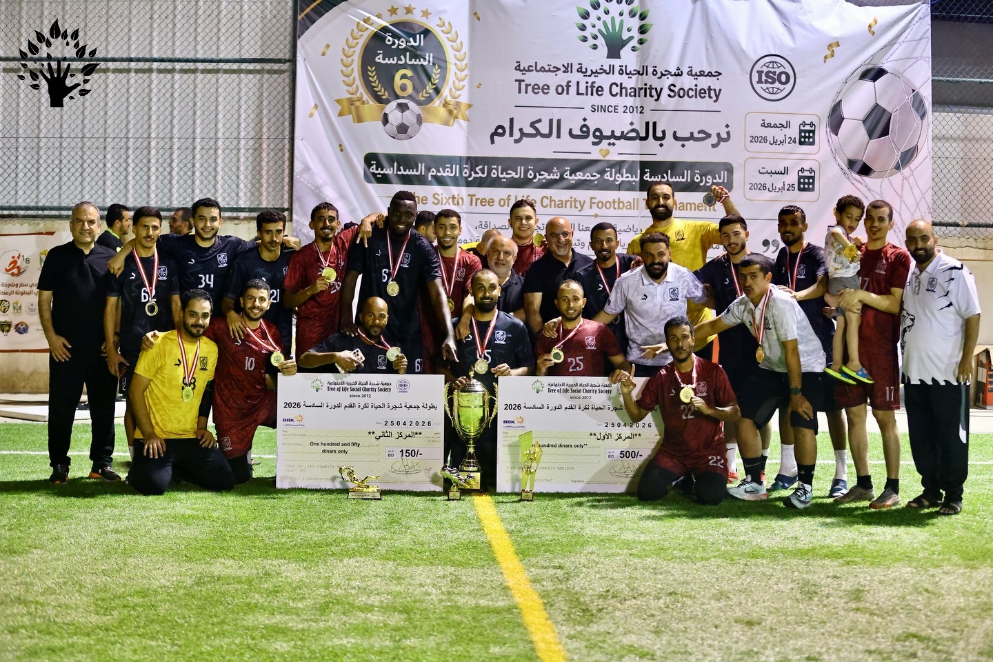The Tree of Life Charitable Social Society organized its sixth annual six-a-side football tournament on Friday and Saturday, April 24th and 25th, 2026. Twenty-eight teams from various associations, institutions, and individuals across the Kingdom of Bahrain participated. Al Hazm team secured first place, while Shabab Al Hazm team came in second. The tournament was characterized by intense competition, exciting play, and great enthusiasm. The Chairman of the Board, Engineer Khalil Al-Dailami, and all members of the Board extend their sincere thanks and appreciation to the Nabdat Hayat Volunteer Team, Bahrain Specialist Hospital, Al Sater Markets, Mr. Sandwich Restaurant, Jubran Manakeesh, Al Jamee Catering Establishment, and Sugar Garden Sweet for their support of the tournament.