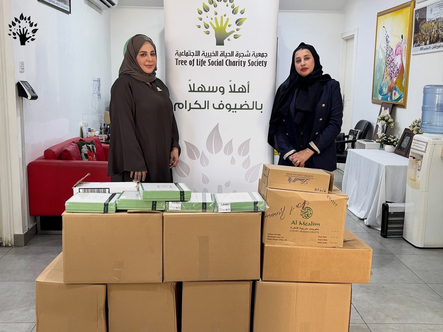 In a noble humanitarian initiative embodying the highest ideals of giving and social responsibility, the Duty Free Company generously donated some of its merchandise to the Tree of Life Charitable Society on Monday, December 22, 2025, in support of orphans, widows, and needy families. The Chairman of the Board, Engineer Khalil Al-Dailami, and all members of the Board of Directors extend their sincere thanks and deep gratitude to the management and staff of the Duty Free Company, appreciating this generous support, which reflects a high level of humanitarianism and social awareness.